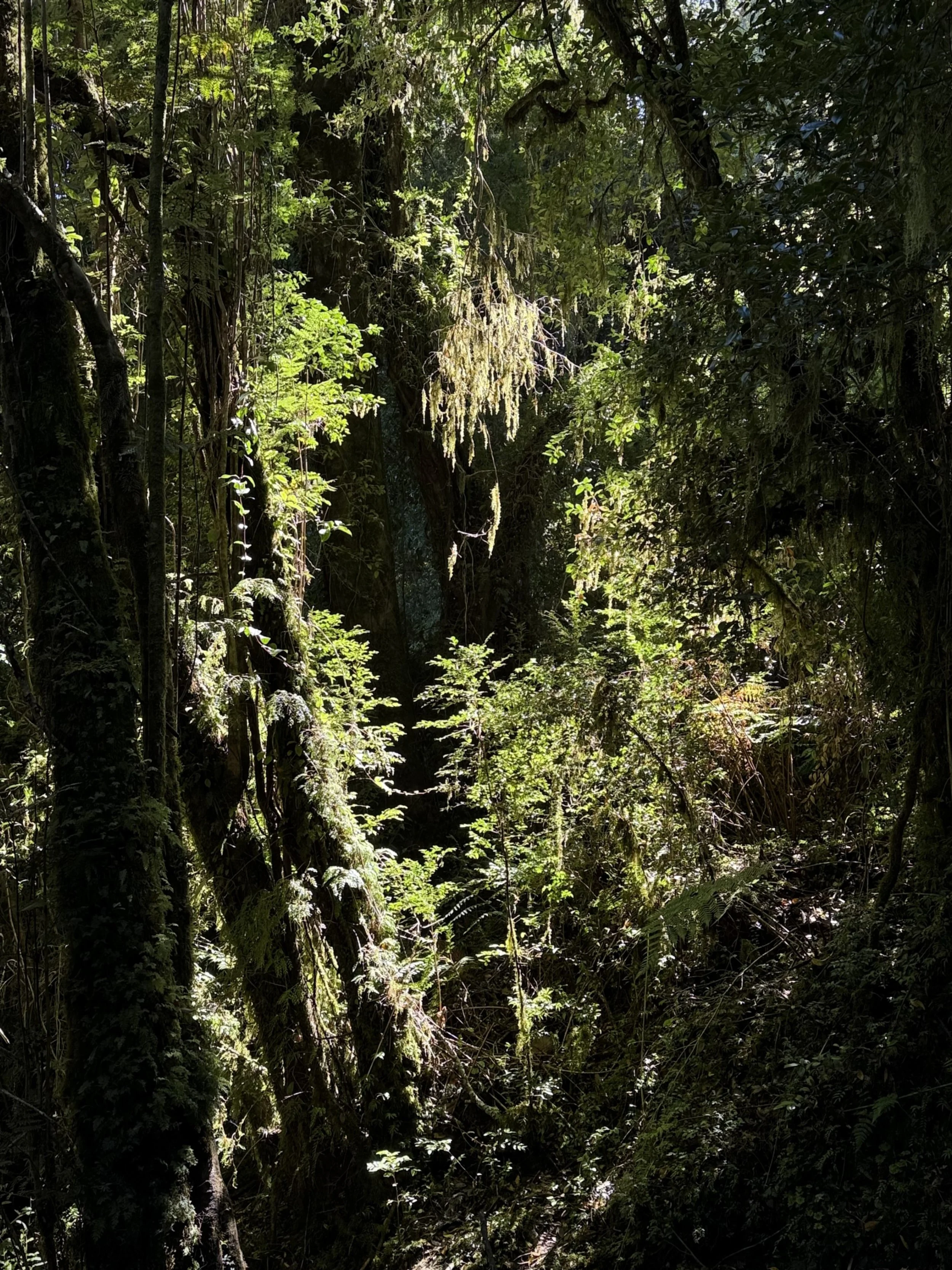 The forest was the more extraordinary thing. Queulat receives up to 4,000 millimetres of rain annually, and the result is a Valdivian rainforest of near-total density — coigüe, tepa, and tepú forming the canopy, nalca colonising every wet surface below with leaves that can reach a metre across, ferns and mosses occupying every available layer. The chucao tapaculo announces itself loudly from the understory and shows itself rarely. The kodkod — the world’s smallest wild cat, entirely dependent on old-growth forest — lives here, though not for the looking. This is forest that has been continuous for 200 million years, surviving the glaciations that buried everything around it, a direct descendant of the Gondwanan system that once connected South America, Antarctica, and Australia. It is still largely as it was.