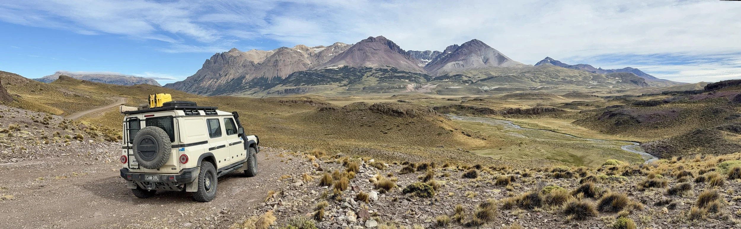 Heading north on Ruta 40 from El Chaltén toward Estancia La Angostura we met Albert, a Dutch motorcyclist riding the Pan-American Highway from Alaska to Ushuaia on his Ducati 998. His bike, shaken by severe corrugations, was having electrical issues. We jump-started him with a battery booster and he continued on his way. Albert personifies the adventurous and eccentric spirit of the Panamericano: the road draws a certain kind of person, and not all of them arrive in the obvious vehicle.
