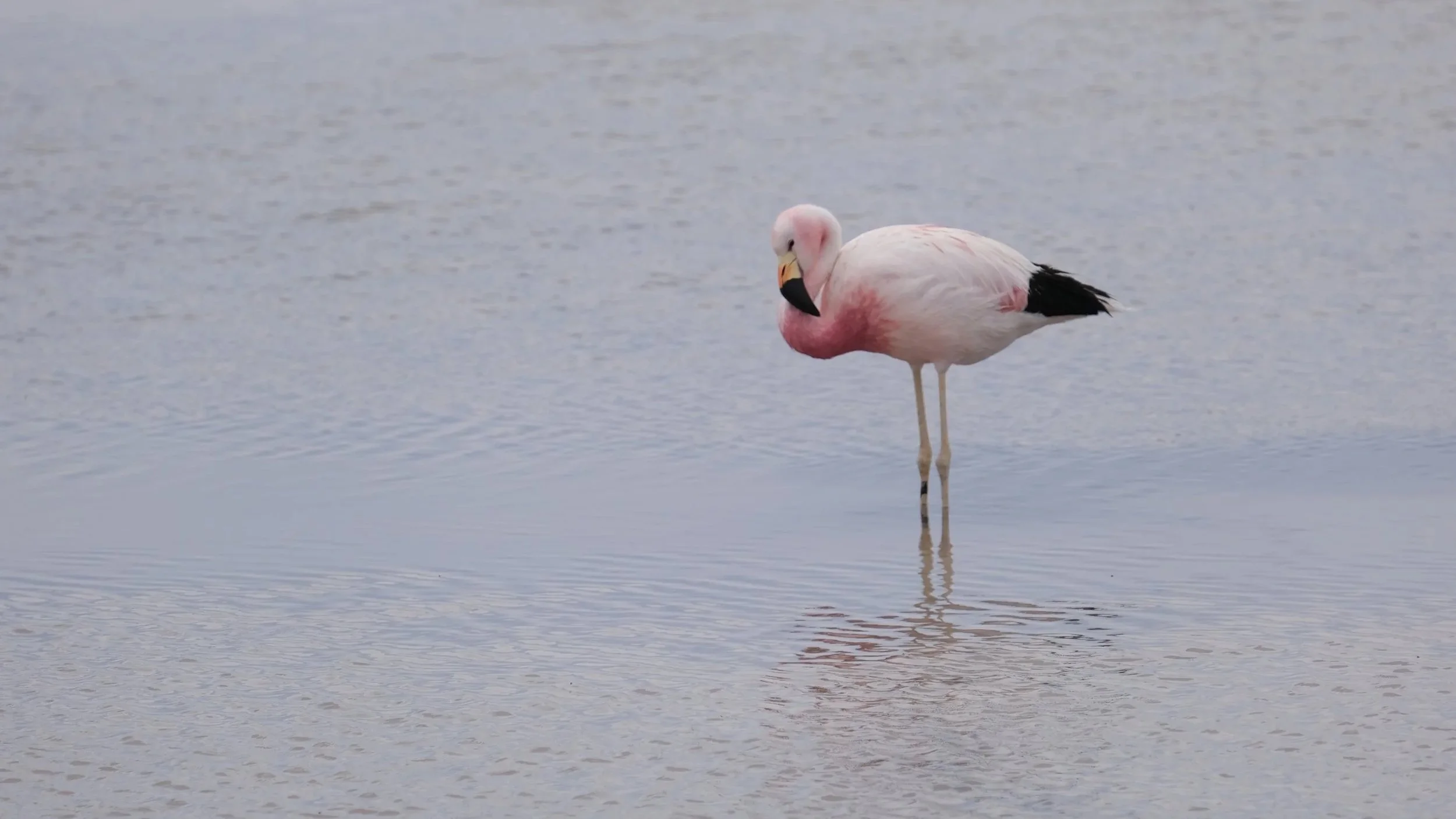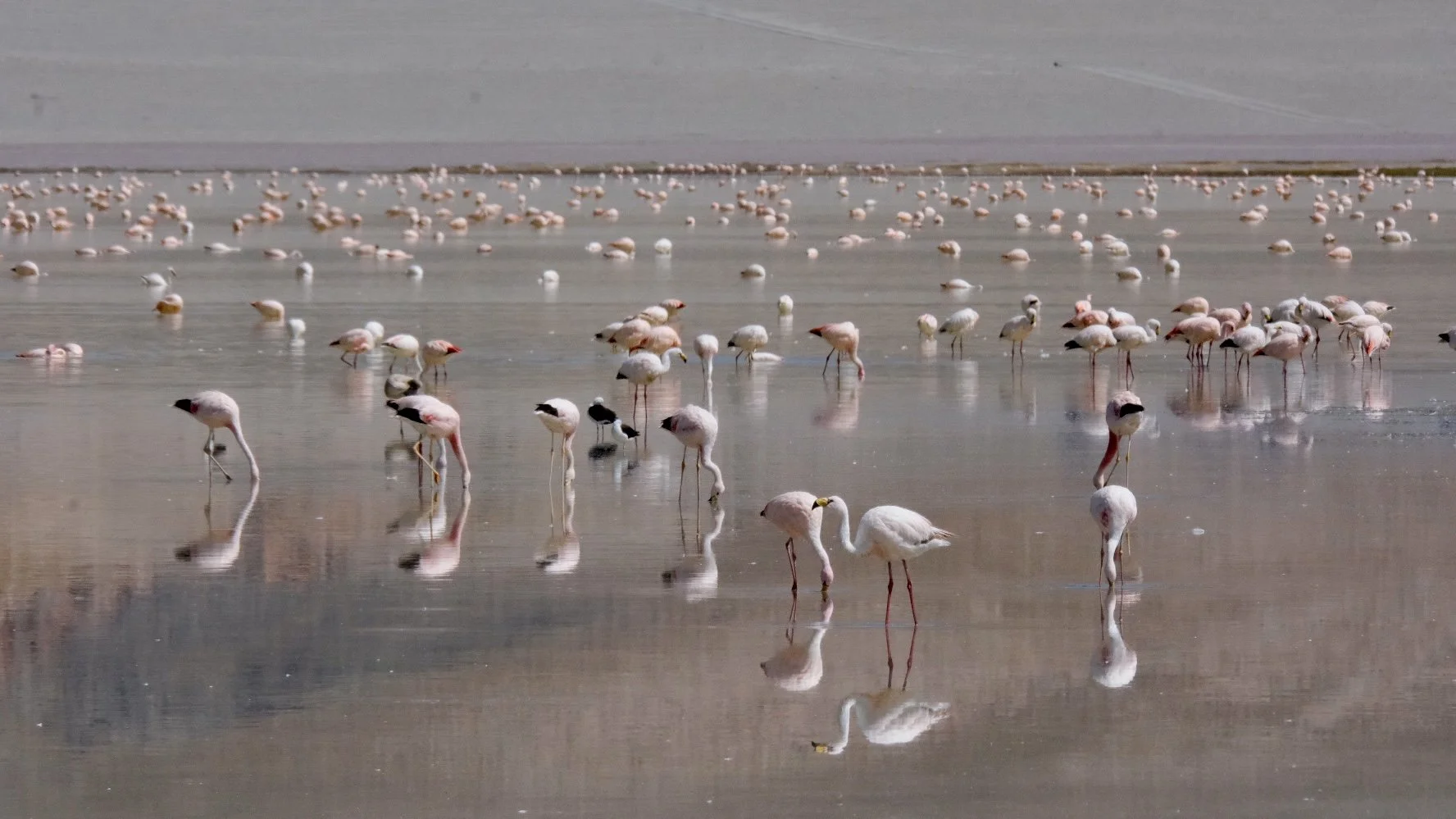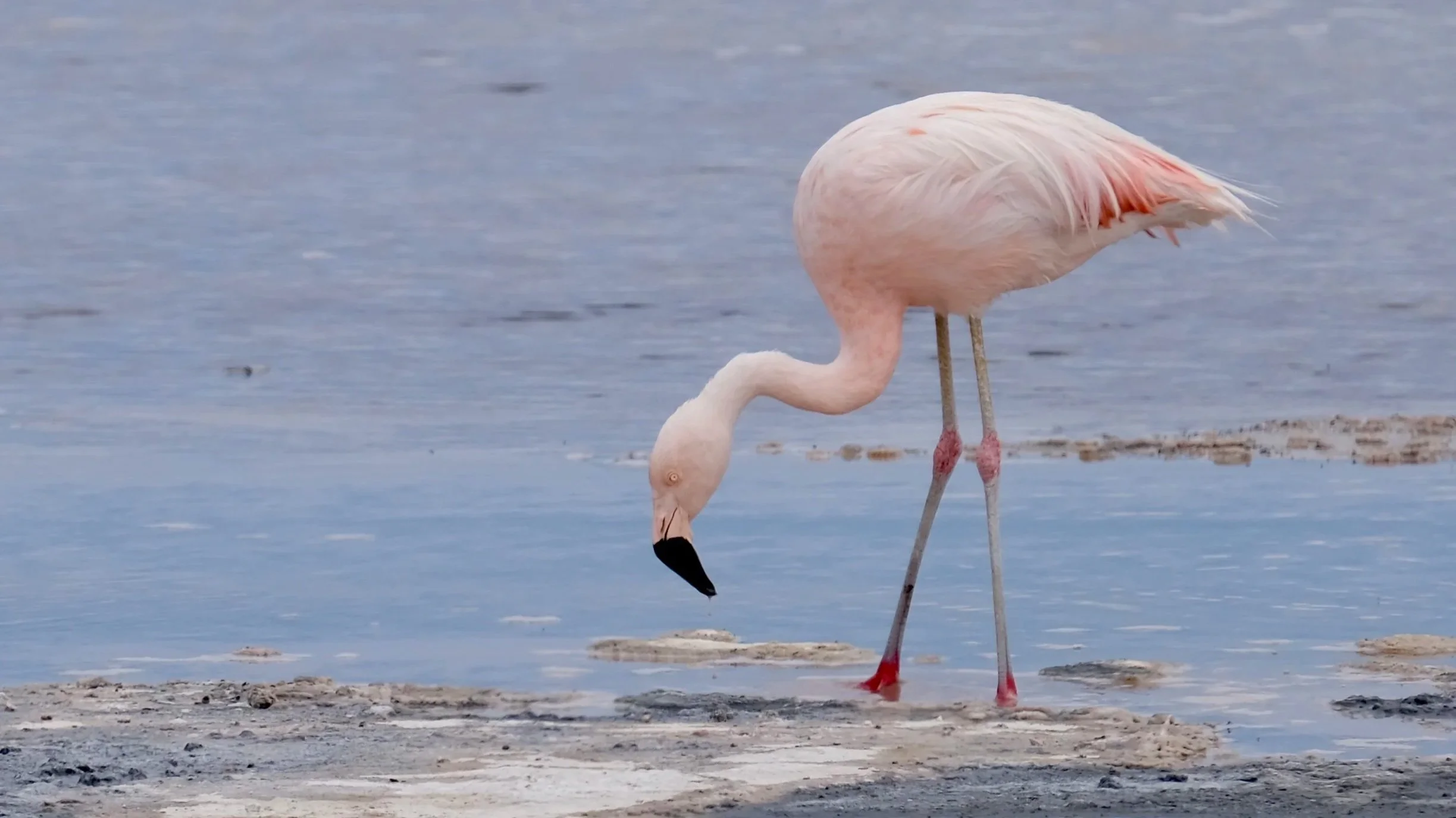 The full improbability of the flamingo as an ecological strategy becomes clear on the Andean puna. Driving south through Chile's Atacama in December, the lakes began delivering more generously — hundreds of Chilean and Puna flamingos at the high altitude salares around San Pedro, the birds scattered across turquoise and rust-coloured water against the volcanic backdrop of the altiplano. The universe, it seemed, was beginning to take the quest seriously.
