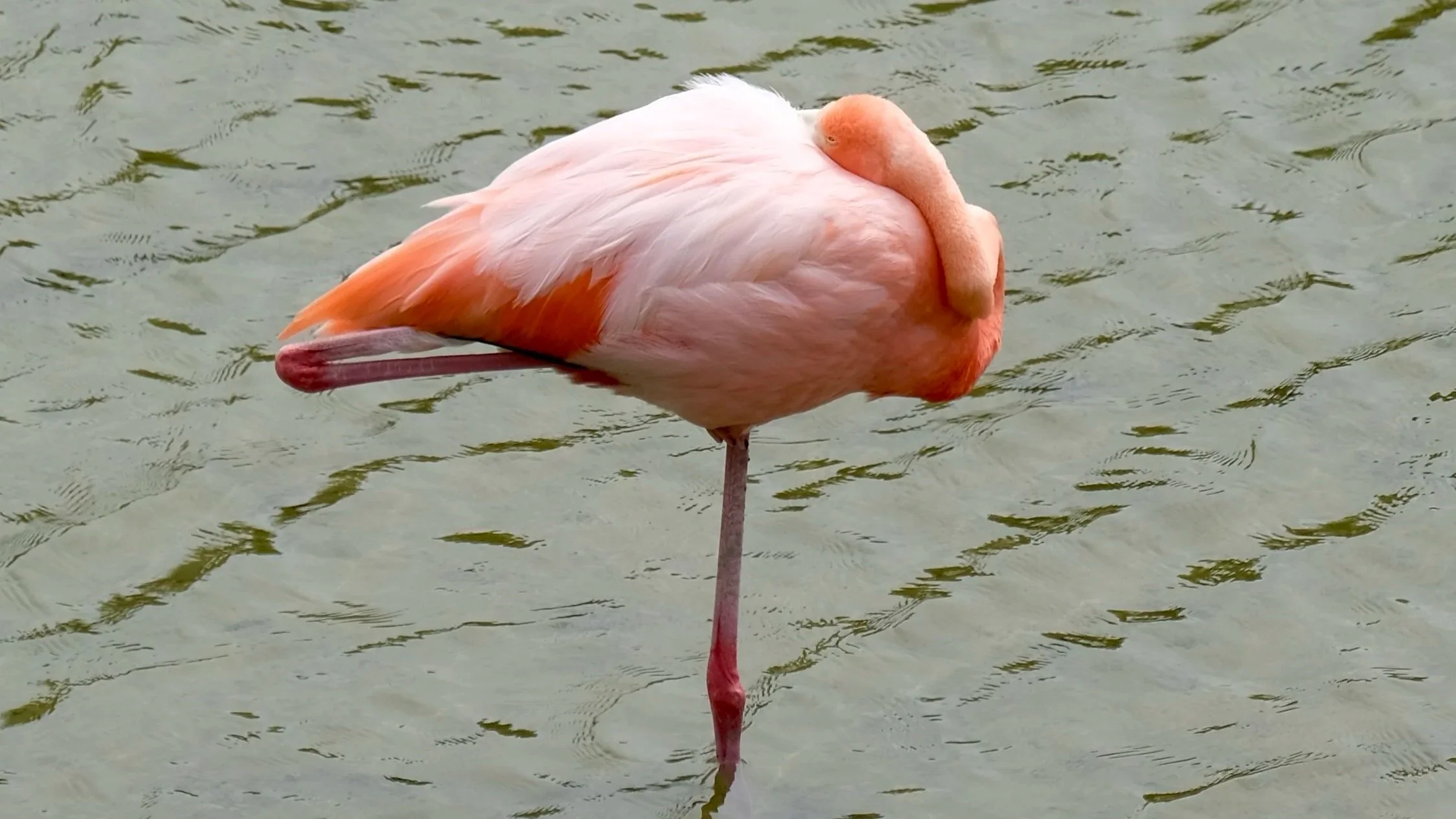 The American flamingo — Phoenicopterus ruber, also known as the Caribbean flamingo — is the largest and most vividly pink of its family, and the Yucatán colony numbers around 30,000 birds distributed between the Celestún and Ría Lagartos Biosphere Reserves on the peninsula's northern coast, making it one of the most important populations in the Americas. We had found one of thirty thousand and accepted that this was a reasonable start.