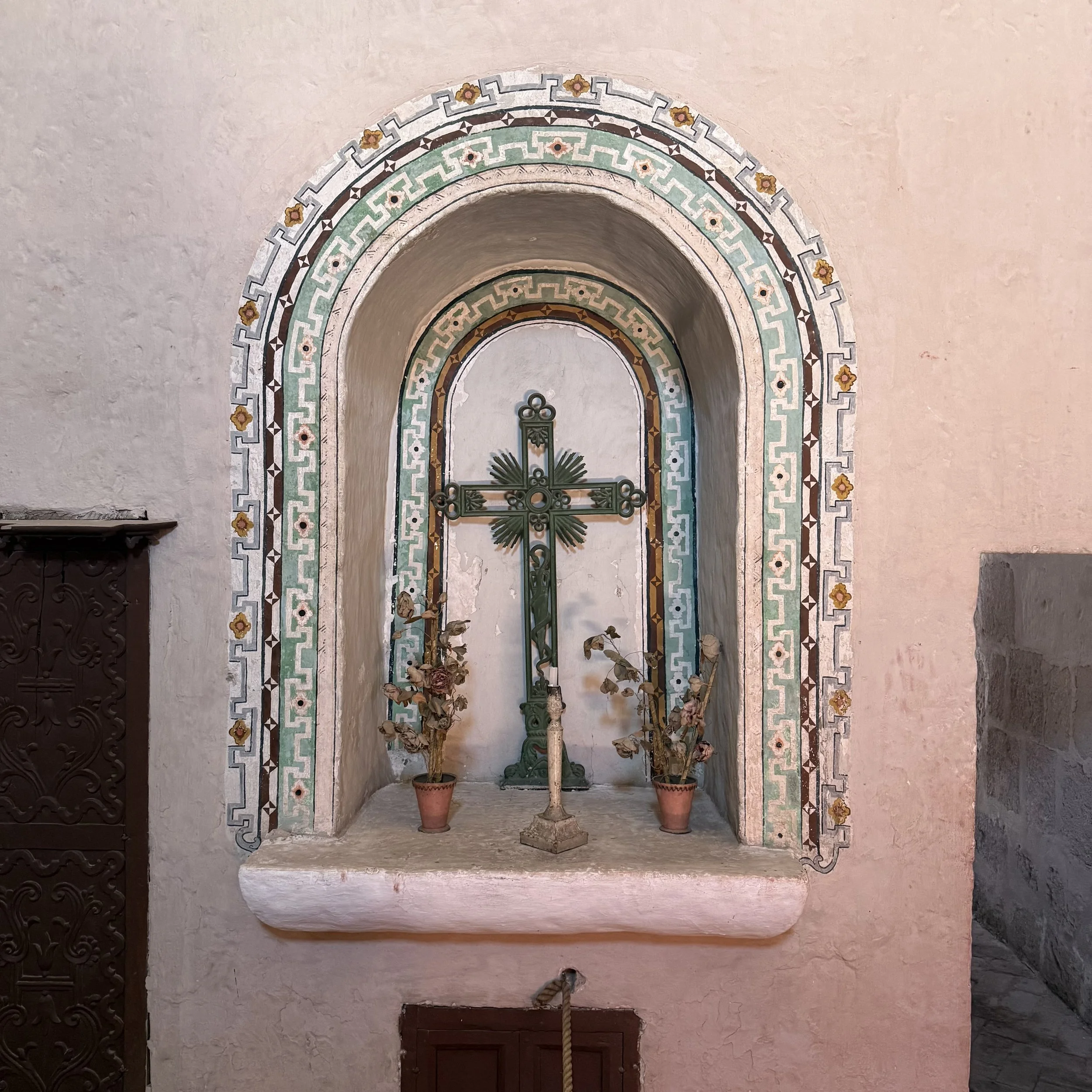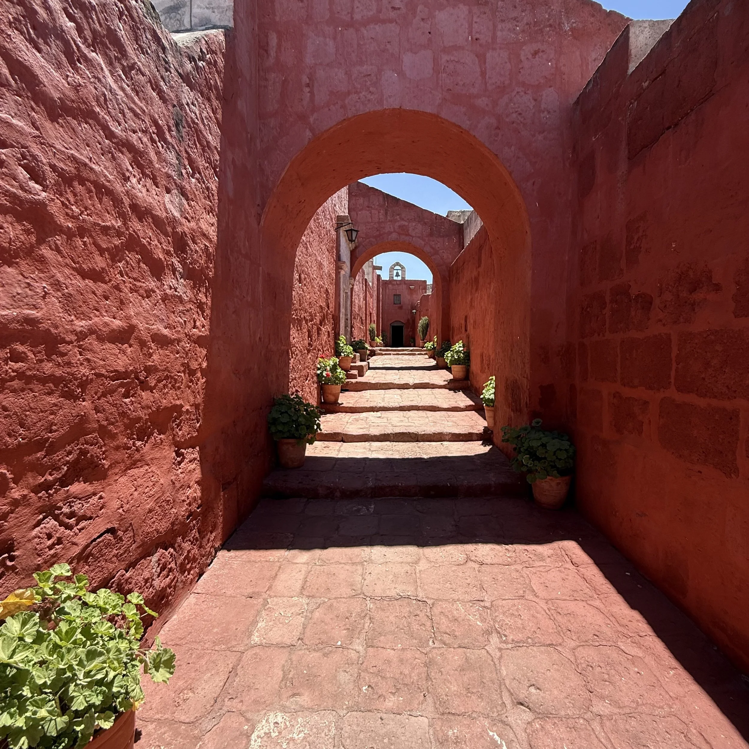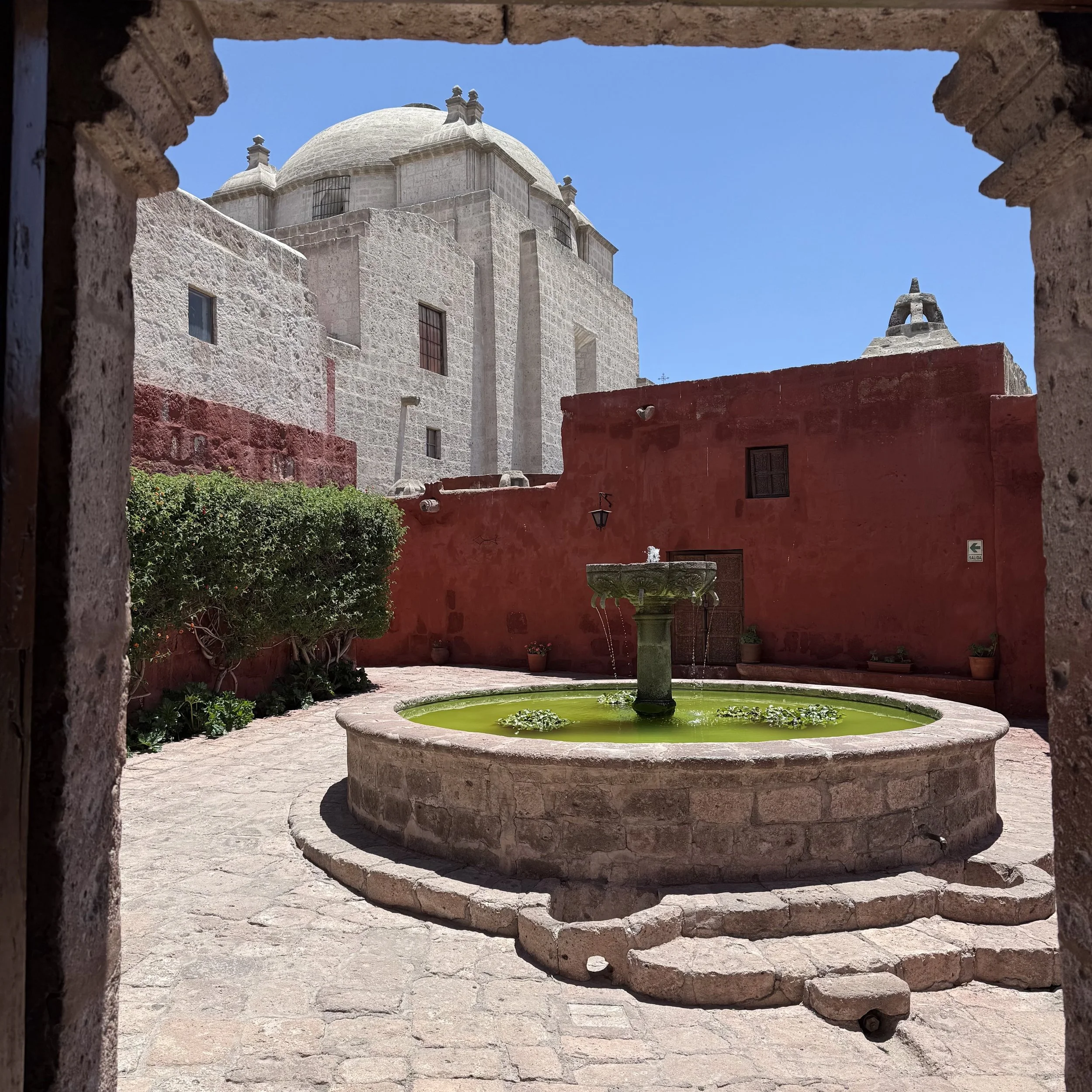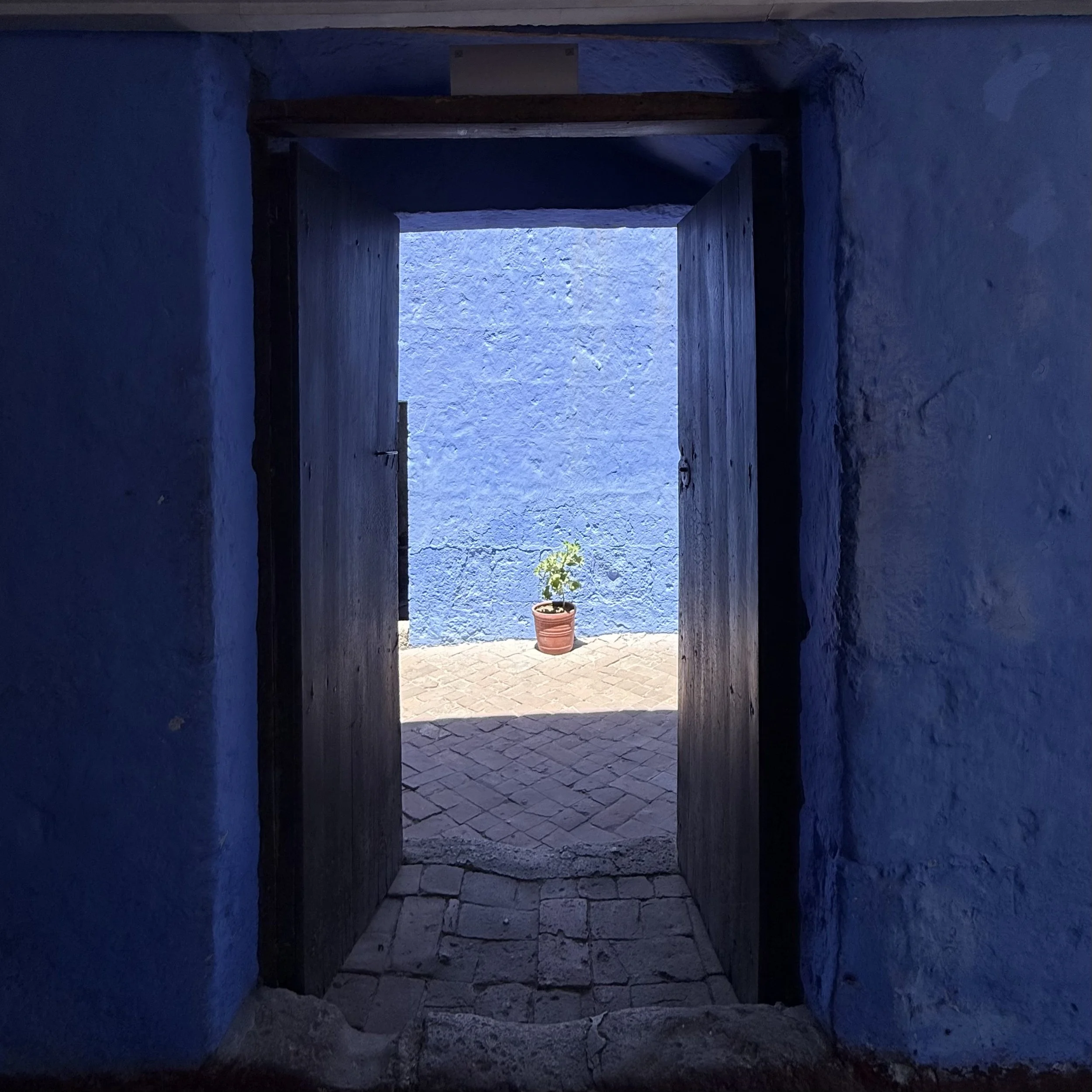 Thus, the axis mundi in colonial Peru is neither purely European nor purely Indigenous. It is re-expressed through Marian theology, preserved by Spanish émigrés anxious to reproduce orthodoxy at the empire’s edge, but it is lived in a landscape that never fully relinquishes its vertical imagination. At Santa Catalina, transcendence does not thunder from heaven; it settles into courtyards, corridors, and inscriptions. In colour and calm spaces. It appears, briefly, in the existential moment when order holds—when the worlds align in silence—before the bell rings and the circle begins again, a cycle until death and beyond.
