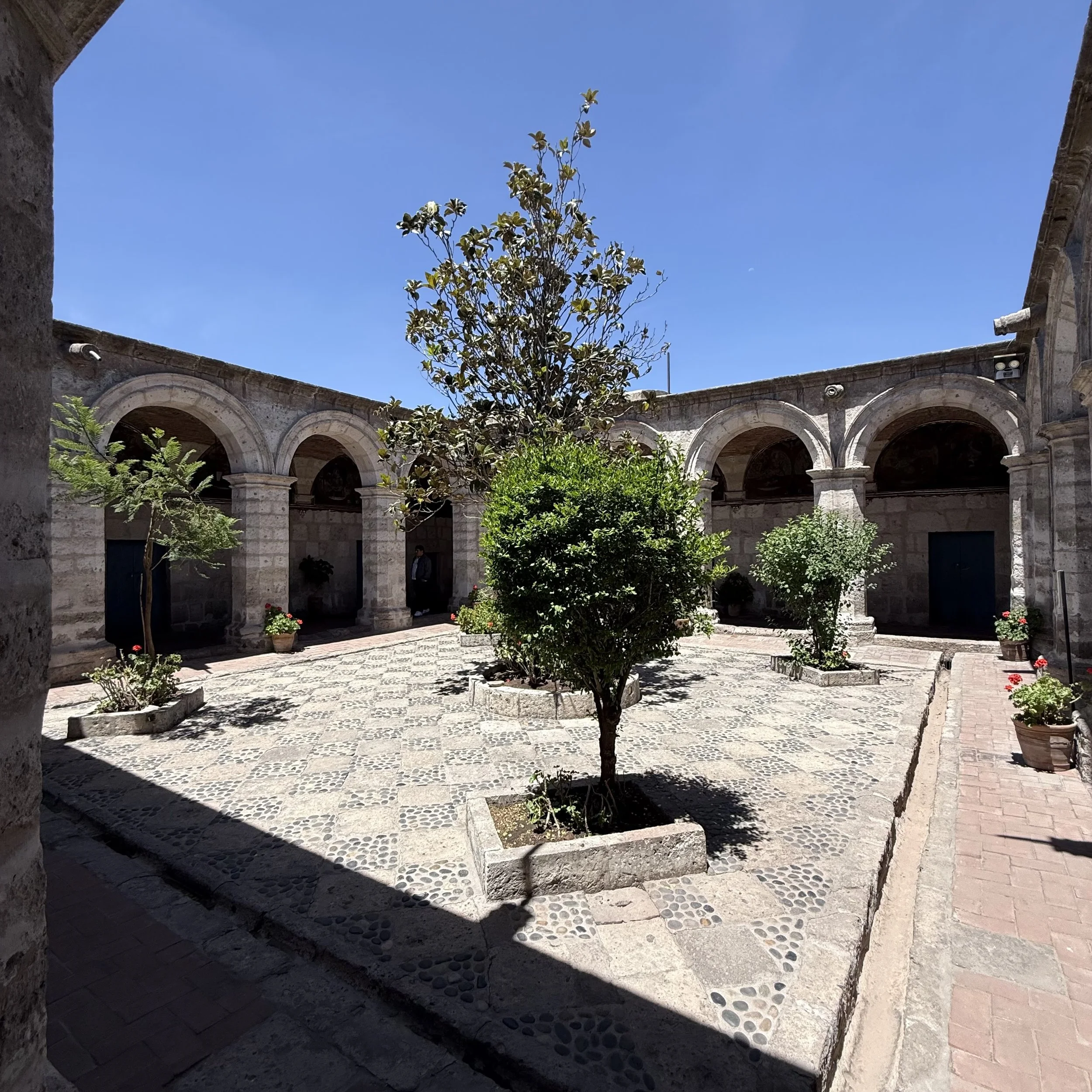 Within Santa Catalina, the cloister is not merely an architectural feature; it is a cosmological device. Movement is restricted, repetitive, circular. The sky is framed by corridors. Silence is imposed, not as absence, but as a medium. Life unfolds in a permanent kay pacha stripped of contingency. The world beyond the walls—markets, earthquakes, rebellions, republics—exists only as distant echo.